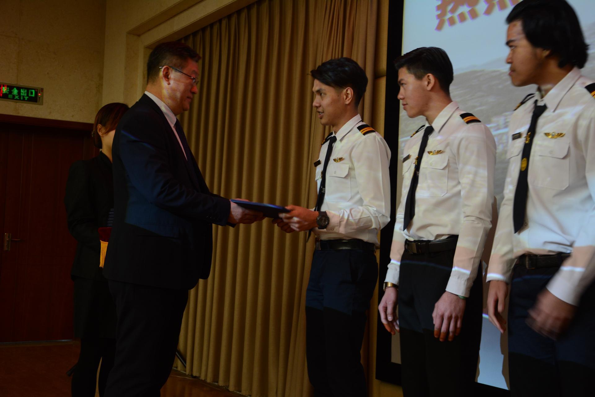 会谈结束后,双方共同为结业学生颁发结业证书。陈松岩为泰方33名教师颁发了我校聘书,杜·平松和阿塔迫·桑卡瓦舍为我校23名航空学院教师颁发孔敬工业社区教育学院聘书。