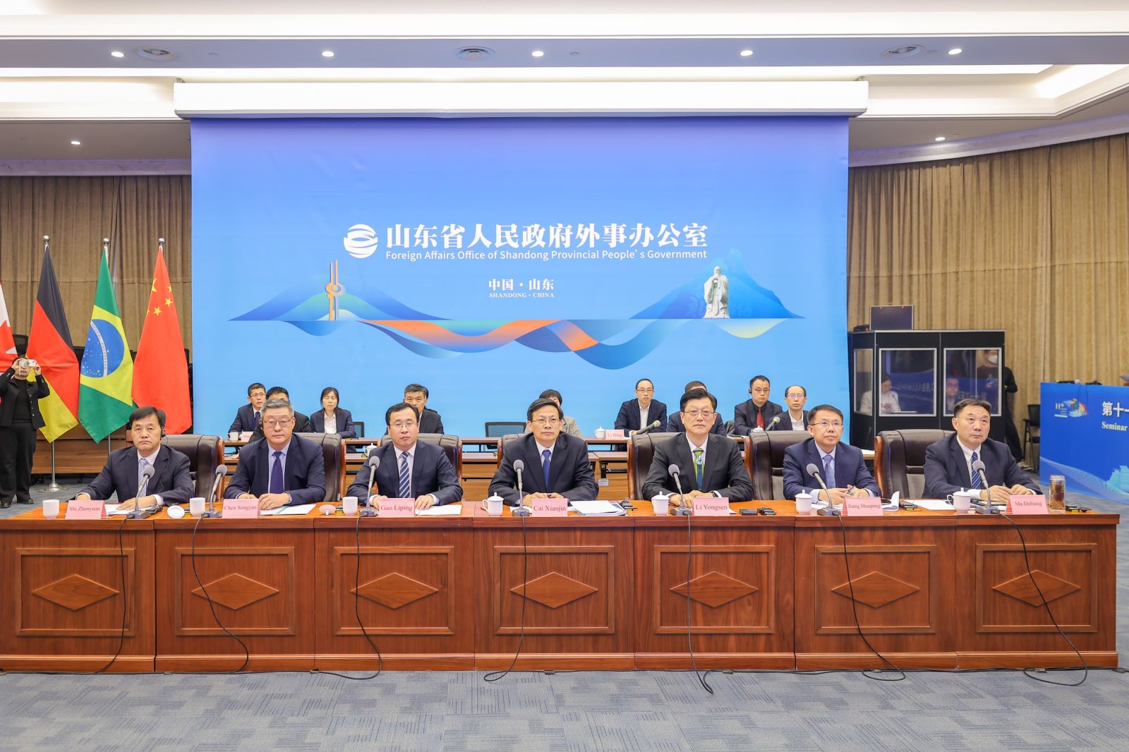 3月28日,山东省委外办与山东省交通运输厅联合以线上线下相结合方式,成功举办第十一次友好省州领导人峰会会前系列活动之绿色交通合作研讨会。山东省委外办主任、省对外友协会长蔡先金出席活动并致辞。山东省交通运输厅党组成员、副厅长高立平;学校党委副书记、院长陈松岩,党委委员、副院长姜华平;山东高速集团、山东港口集团、浪潮智慧科技有限公司、海信网络科技有限公司等有关负责人,应邀出席活动。