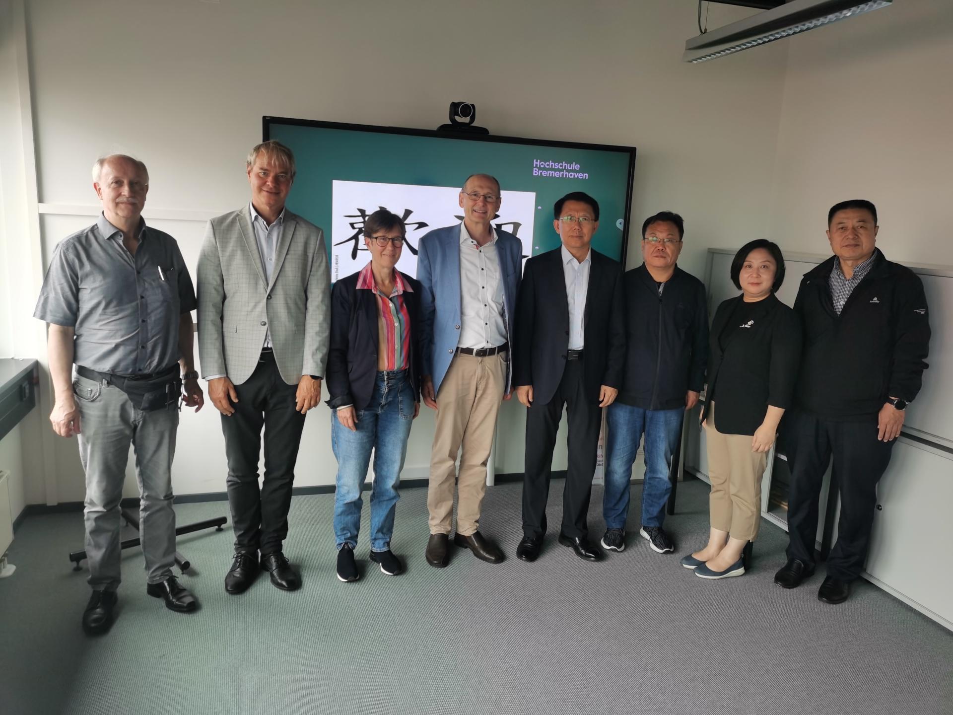 在德国不来梅哈芬应用技术大学,代表团和管理与信息学院院长费尔德迈耶教授、电气工程专业教授以及国际交流处负责人等交流座谈。双方详细介绍了各自学校基本情况、人才培养、科研研究、实验室建设等情况,并就后续在嵌入式系统、物流工程等专业人才培养、教师交流,以及可持续交通、自动化与电气工程、海事管理等方向的学术合作进行深入讨论。